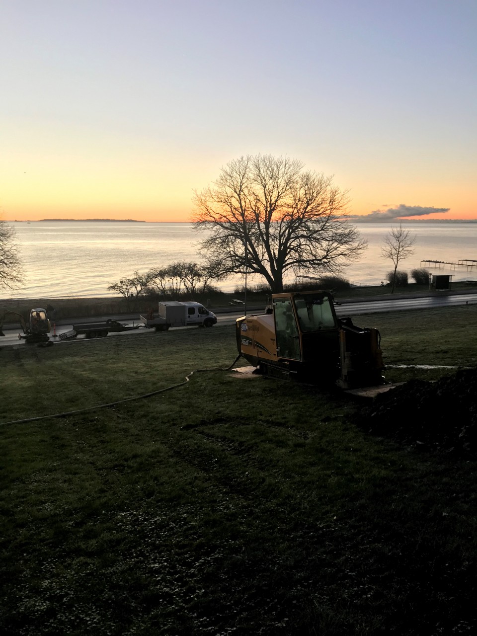 Det er ikke så tosset med en smuk udsigt, når vi arbejder. Lige for tiden, er vi blandt andet i Espergærde og forsyne Plejehjemmet Strandhøj med rør til brandsikring af bygningerne, så der hurtigt kan blive ledt noget vand rundt, hvis uheldet skulle være ude.Dette er en opgave, vi har fåe...