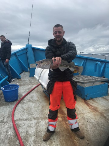 Lige pt. er vi ude på havet og der kommer stille og roligt den ene fisk efter den anden i kutteren.