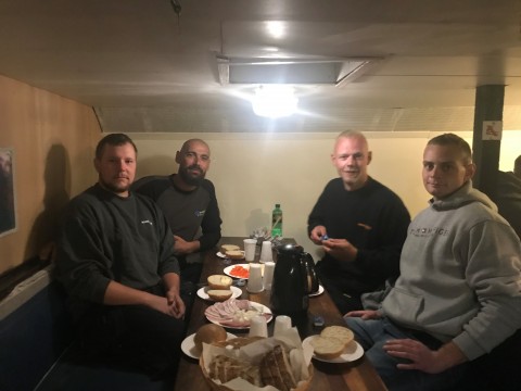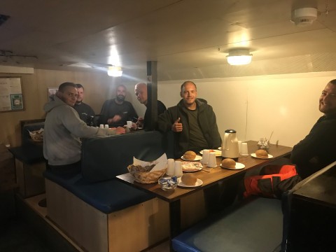 I dag er vi taget på teambuildingsdag, - Vi startede ud ombord på en fin gammel fiskekutter og stævnede ud fra Helsingør havn i morges kl. 7:30. Den gode skipper havde sørget for morgenmad til alle mand (Fast som flydende), så vi havde noget at stå imod med, når der skulle fiskes.
