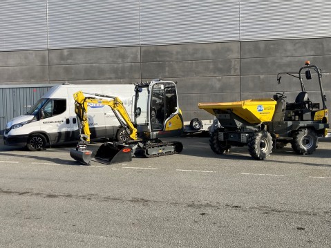 Dagen idag, var en som nogle af vores ansatte havde set frem til længe. Vores to nye Neuson gravemaskiner og nye Neusom dumper, var endelig klar til afhentning hos Stemas i Køge.