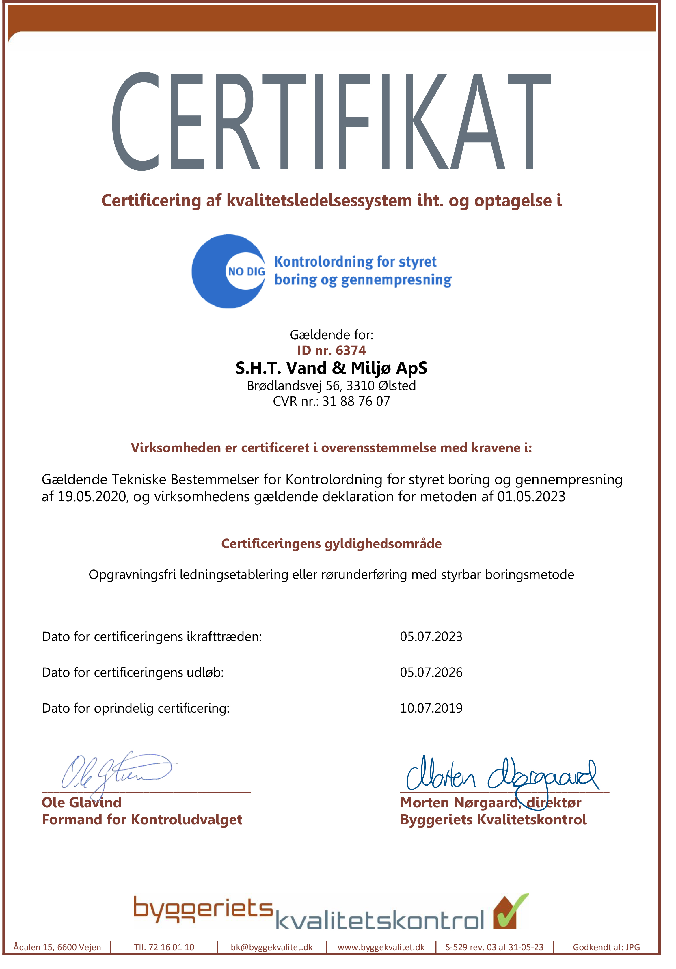 Vi er stolte over, at vi i 2019 blev optaget i "Kontrolordningen for styret boring og gennempresning".